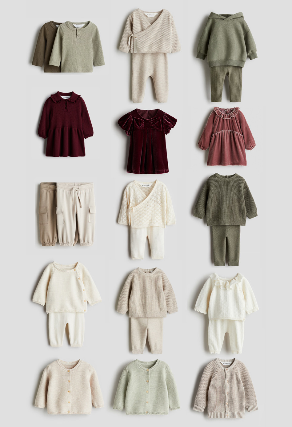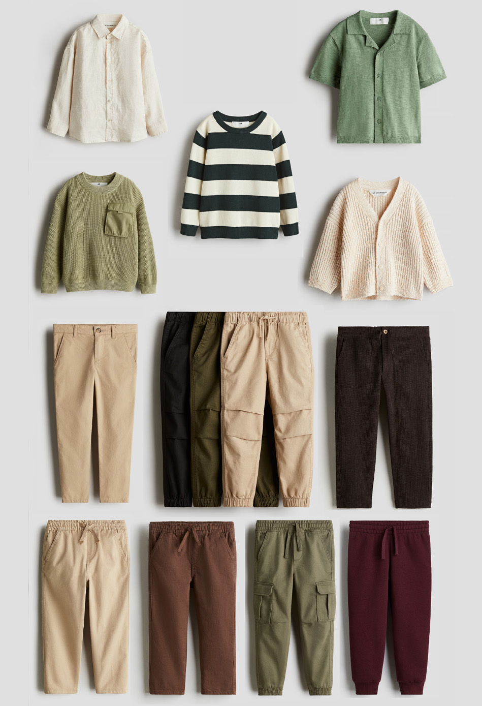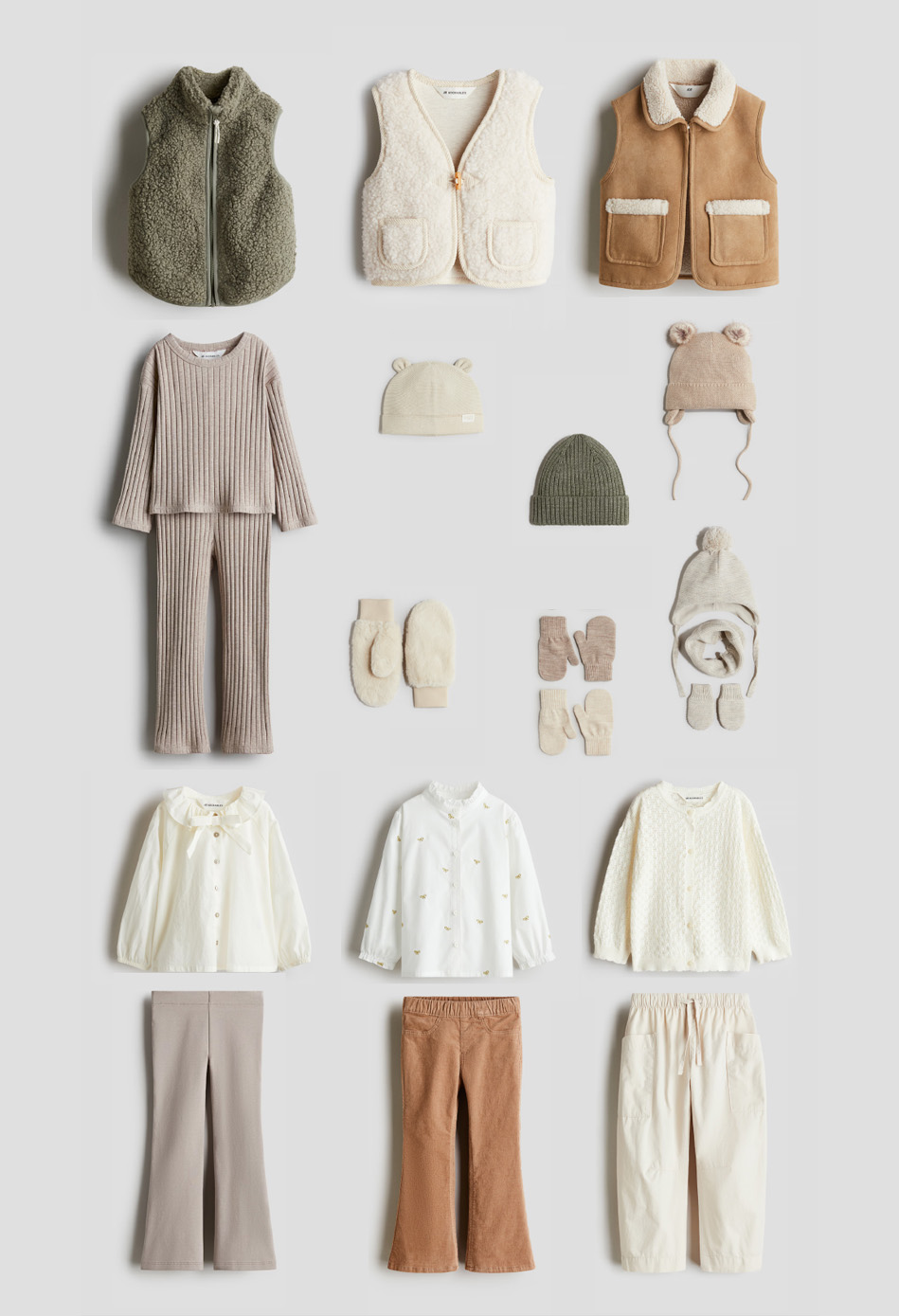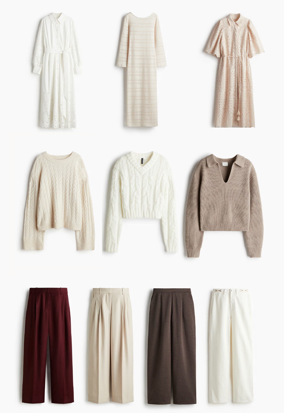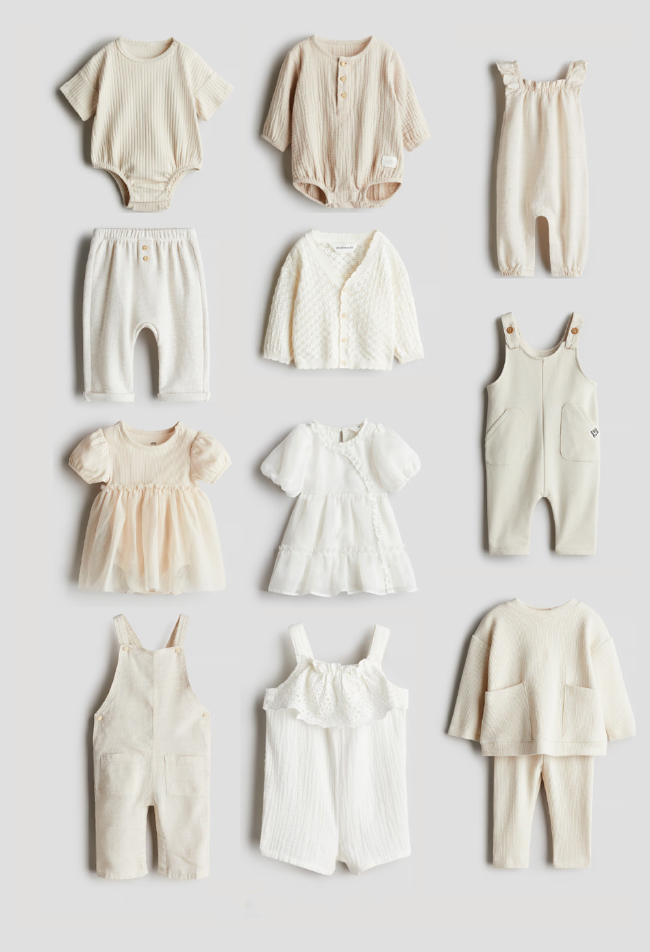 Ropa de telas naturales, tejidos y con textura bonita, en tonos naturales y neutros.